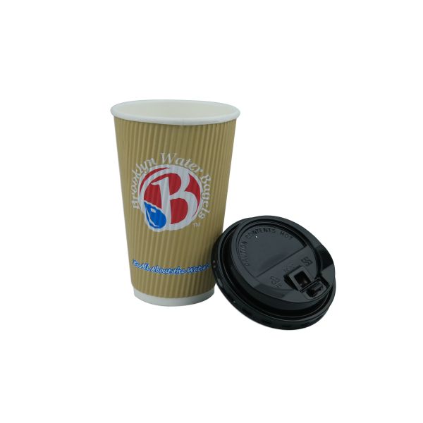 16 oz Eco-friendly Printed Disposable Ripple Coffee Paper Cups With Lids